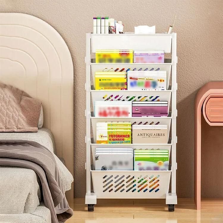 - 6段 ファイルワゴン キャスター付 デスク下収納 マガジンラック 書類 収納 仕切りデスク下本棚 A4対応 本立て ファイル立て 収納ボックス