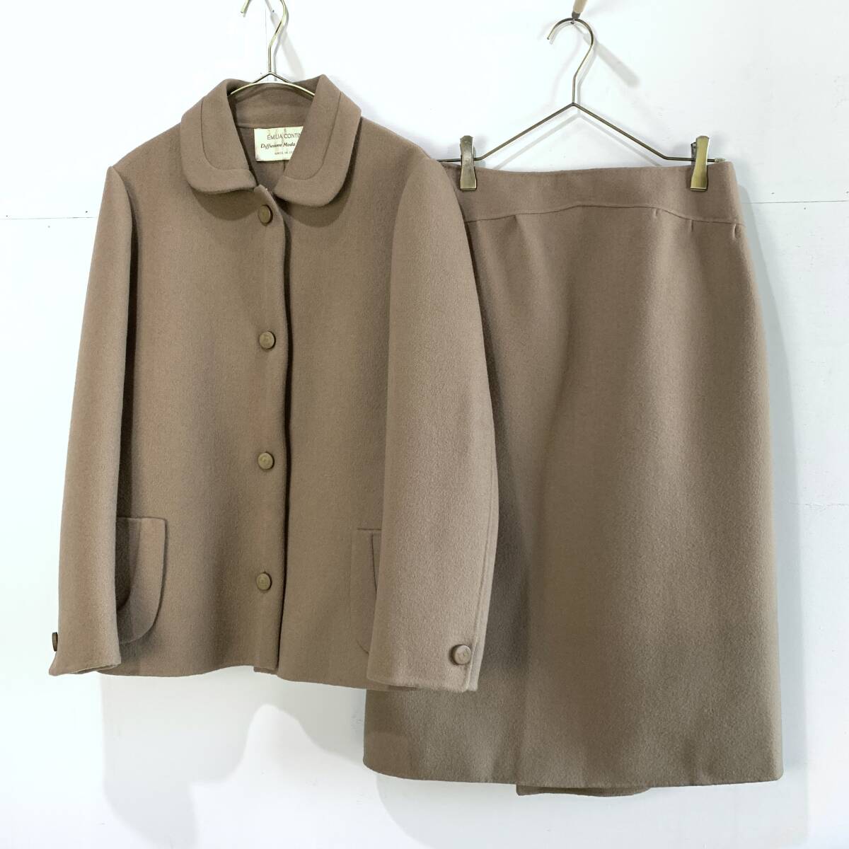 > ☆イタリア製 Vintage EMILIA CONTINI AGNONA セットアップ 上下 ウールメルトンジャケット スカート ベージュ系【送料一律/同梱可能】K