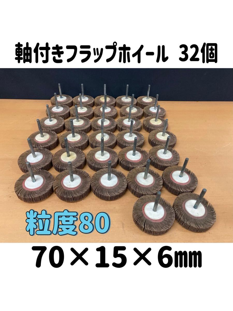 - 堀50) 軸付きフラップホイール 32個セット 粒度80番 70×15×6 A80 フラップホイール OK グラインダー 研磨 研削 工具 (251009 台)