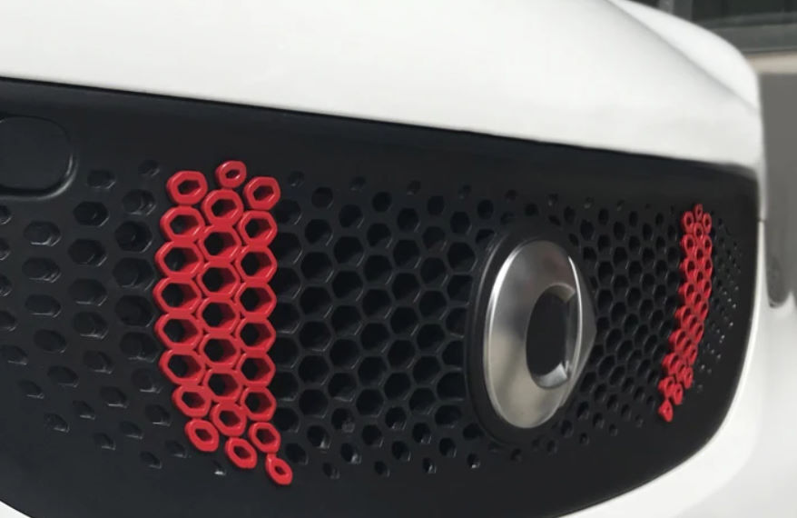 > ベンツ スマート 453 フォーツー フォーフォー フロントグリル ハニカムカバー 赤 ABS製 外装 ドレスアップ