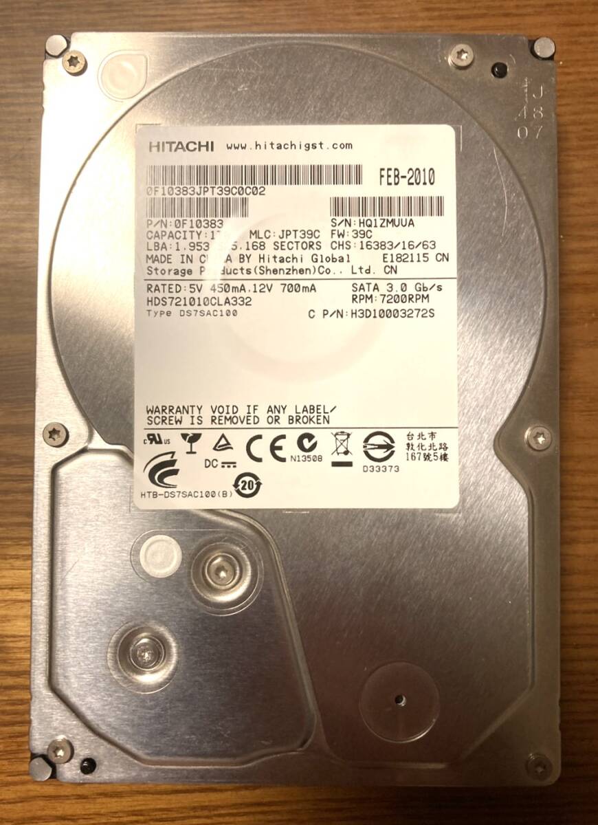 - 【状態◎】日立 Hitachi/HGST Deskstar 7K1000.Cシリーズ HDS721010CLA332 3.5インチ HDD 1TB(耐久性・堅牢性に優れたモデル)