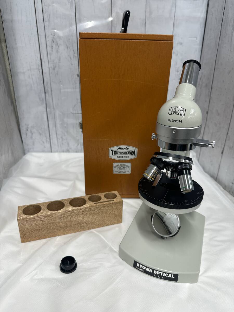 - 【14】 ⑧ KYOWA 簡易偏光顕微鏡 MODEL KLP 顕微鏡 木製ケース付き 協和 KLP