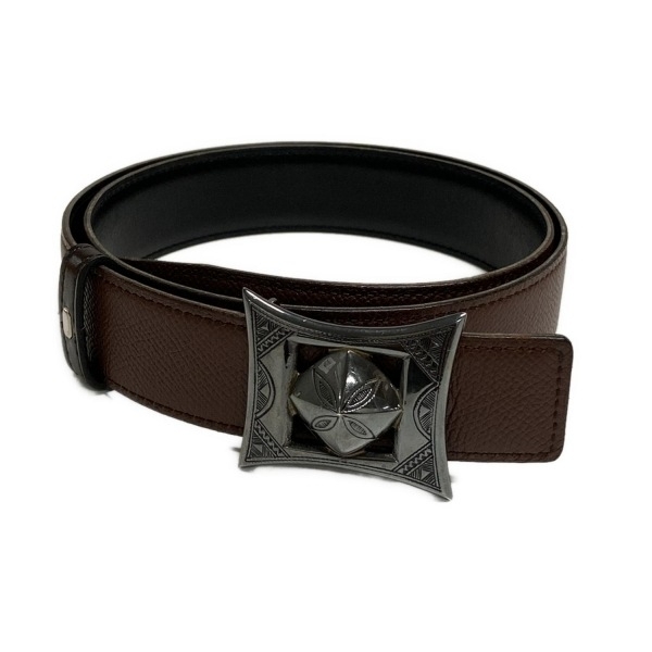 - エルメス HERMES 08 トゥアレグ ダークブラウン×黒 シルバー金具 〇Z ベルト