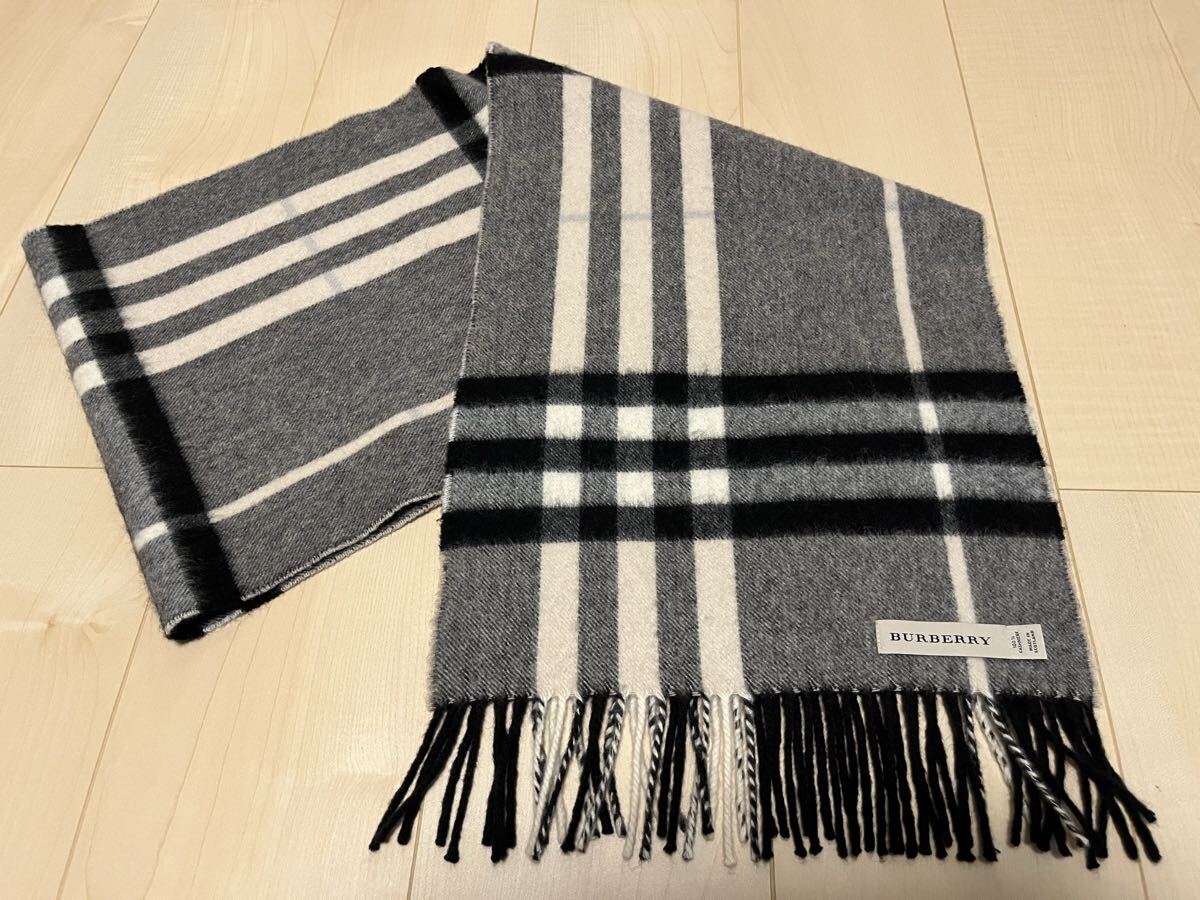 - BURBERRY バーバリー マフラー カシミア100% グレー系 送料無料!!!