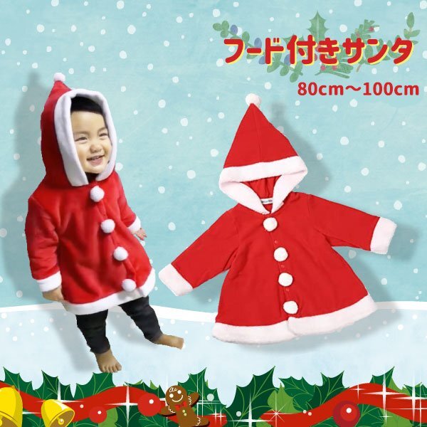 - 送料無料 フード付きサンタ ベビー 選べるサイズ 80~100 コート 赤ちゃん キッズ 6ケ月~2歳 男女兼用 サンタクロース クリスマス ポンチ