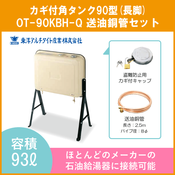 - 灯油タンク カギ付オイルタンク(角型) 送油銅管セット 石油給湯器 ボイラー用 90リットル 長脚タイプ OT-90KBH-Q 東洋アルチタイト
