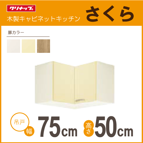 > 隅吊戸棚 クリナップ さくら 幅:75cm 高さ:50cm WTAT-75C WTAY-75C WT4B-75C 幅:750mm 高さ:500mm ★