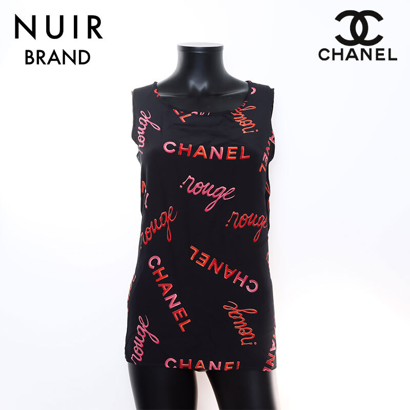 > 極美品 シャネル CHANEL 総柄 シルク ノースリーブ サイズ:36 半袖シャツ ブラック WS1644