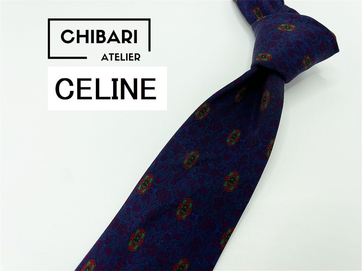 - 【美品】CELINE セリーヌ ロゴ&ドット柄 ネクタイ 3本以上 送料無料 メンズ ネイビー 0902196