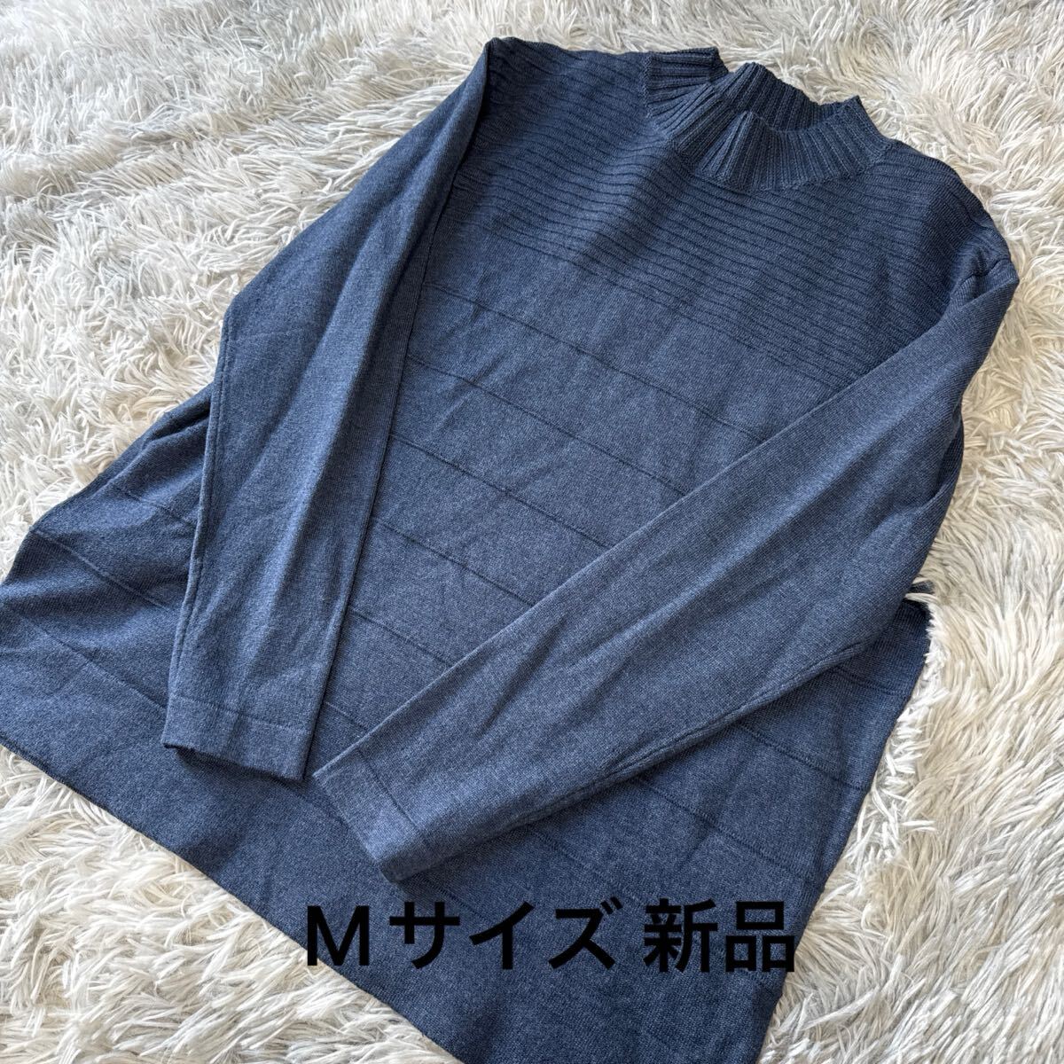 - 洗濯機で洗えるボトルネック長袖ガーターニット紺M★ゆうパケット配送可能★新品18