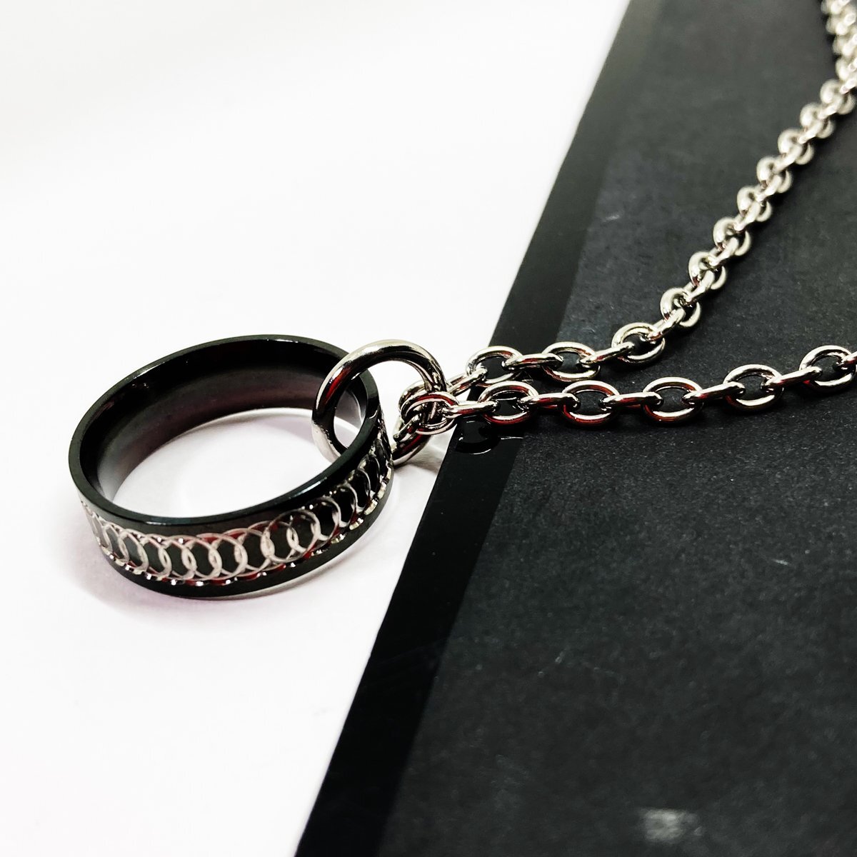 - ステンレス製 リングネックレス ネックレス 全長約40cm 幅3mm NMR08