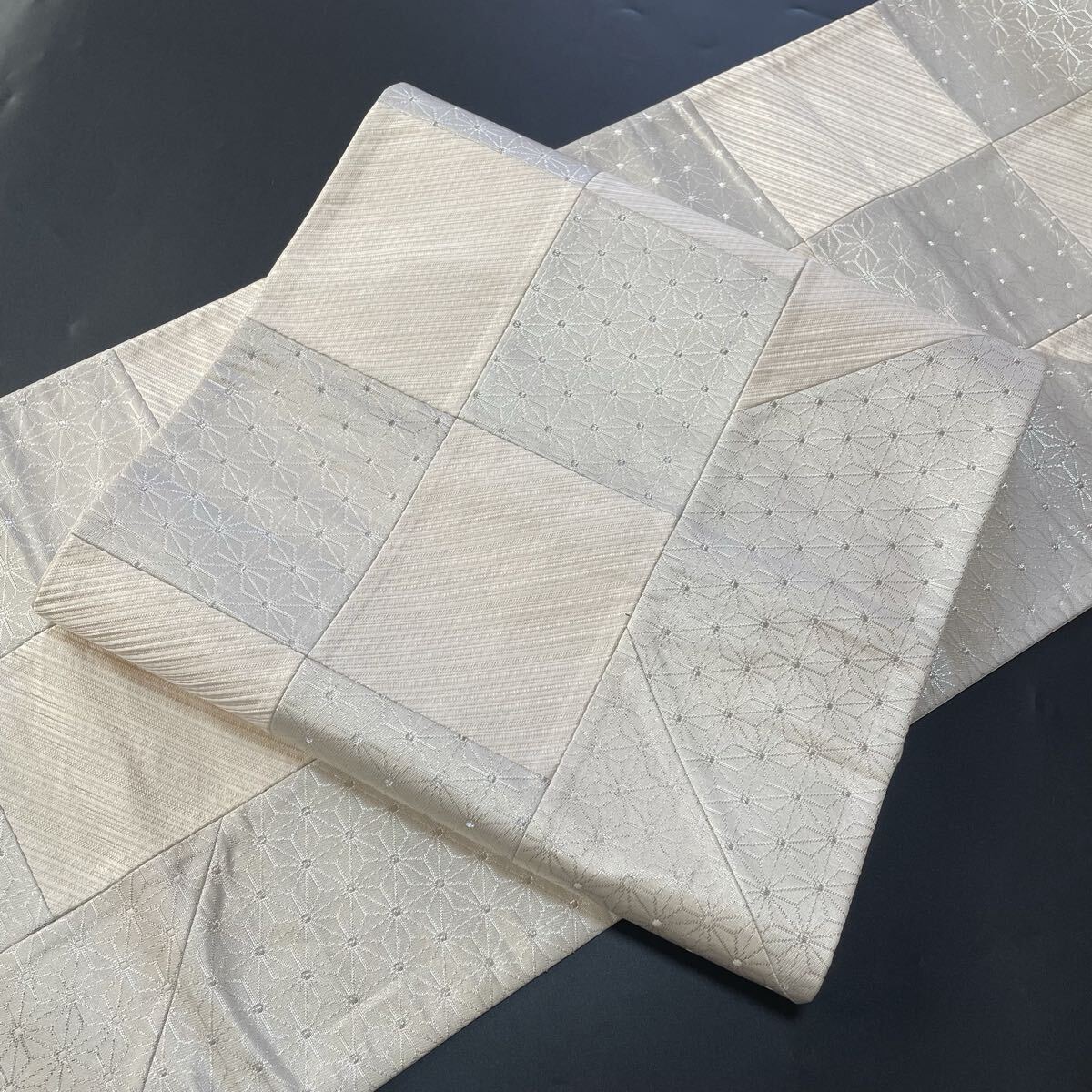 - #G180 美品 袋帯 六通 綴織 パッチワーク調 金糸 麻の葉 正絹 和装 和服【wellriver】