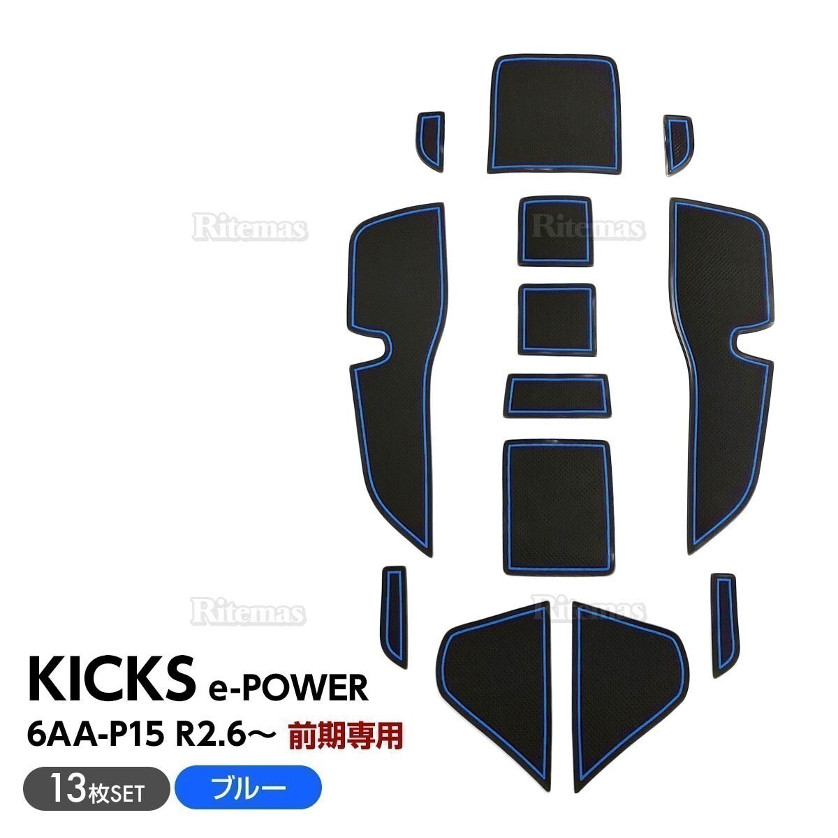 > キックス ドアポケットマット ラバーマット ドアポケットマット ドリンクホルダーマット カーマット ゴムマット KICKS e-POWER 13枚 青