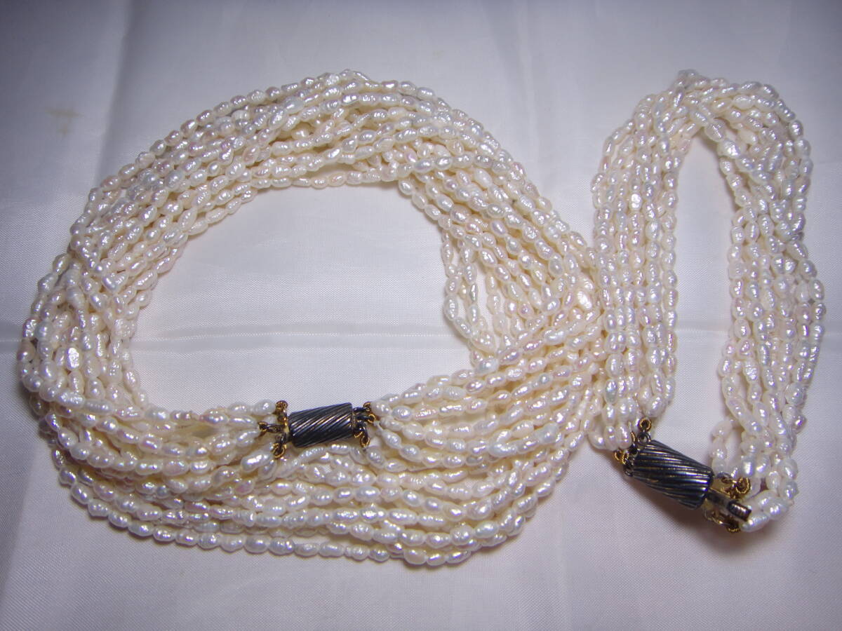 - 本真珠 本パール 淡水パール 10連ネックレス&10連ブレスレット 2点セット ロング ヴィンテージ Y811