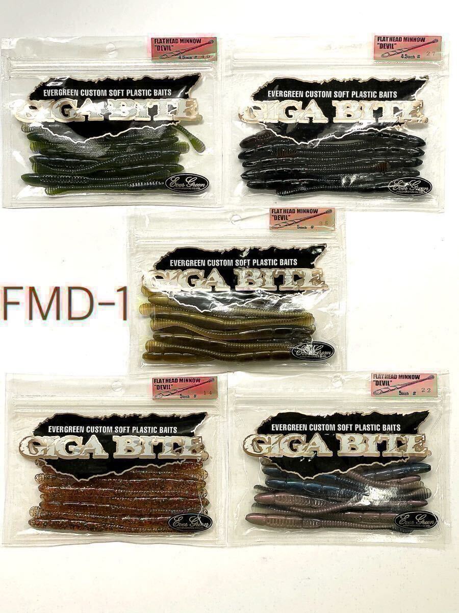 - 【新品未使用品・送料無料】エバーグリーン ギガベイトフラットヘッドミノーデビル4.5inchと5inch5個セットでお買い得!