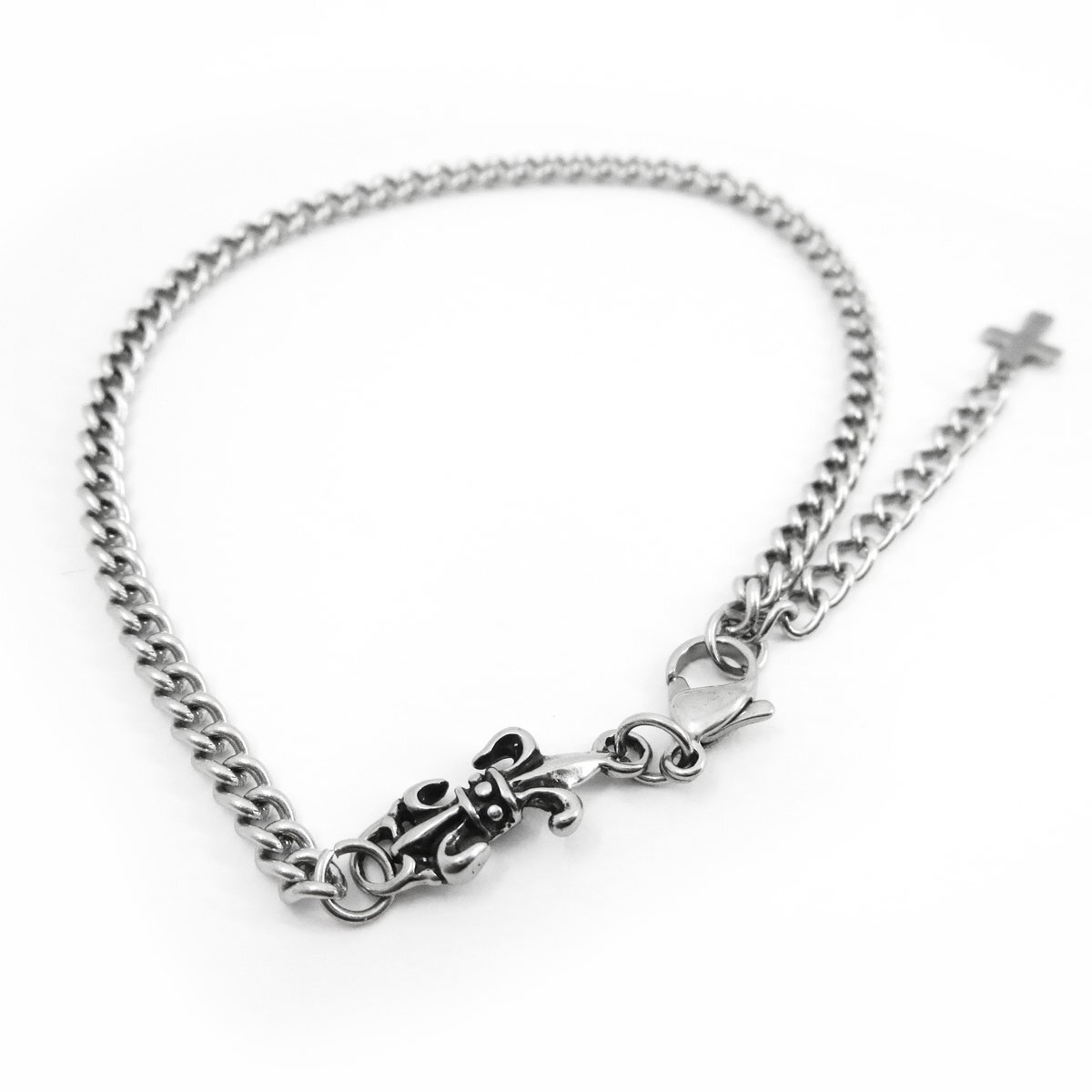 - ステンレスアンクレット 百合の紋章チャーム チェーン幅3.5mm 28cm(24cm+4cmアジャスター) GN16