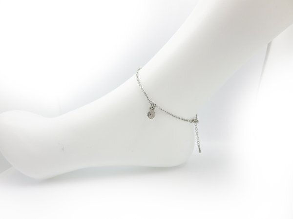> ステンレスチェーンアンクレット平小豆2.4mm ミニスマイル 太陽チャーム付き 26cm(22cm+4cmアジャスター) FN202
