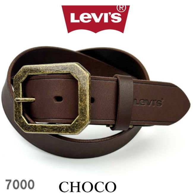 - チョコ リーバイス リアルレザー 7000 捻引き オクタゴン ワイド ベルト メンズ レディース