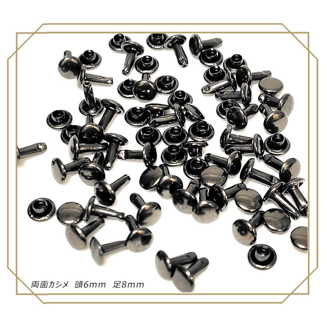 - 両面カシメ 6mm足8mm ブラック 100個 レザークラフト金具