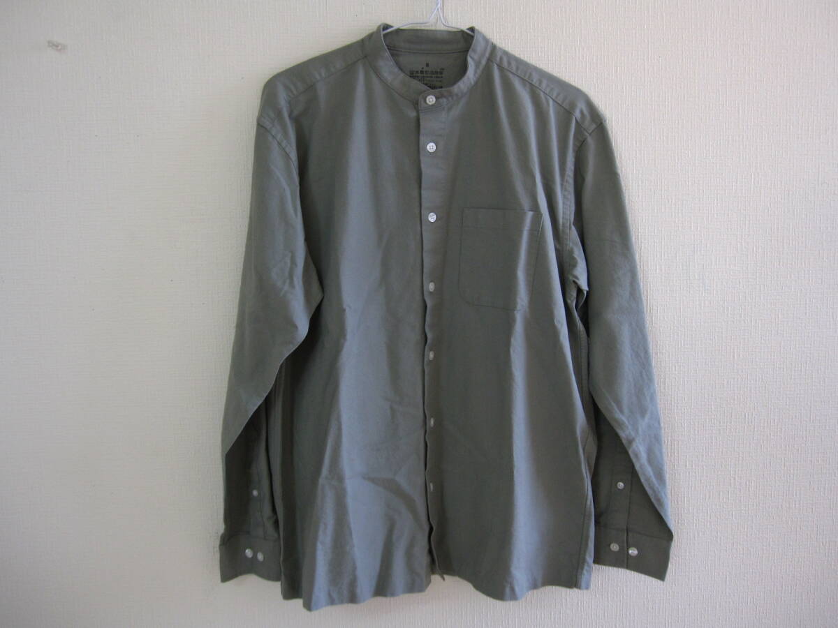 - ★未着用品★ 無印良品 洗いざらしオックススタンドカラーシャツ カーキ系 長袖 メンズS(レディースMの方にも) 綿100%