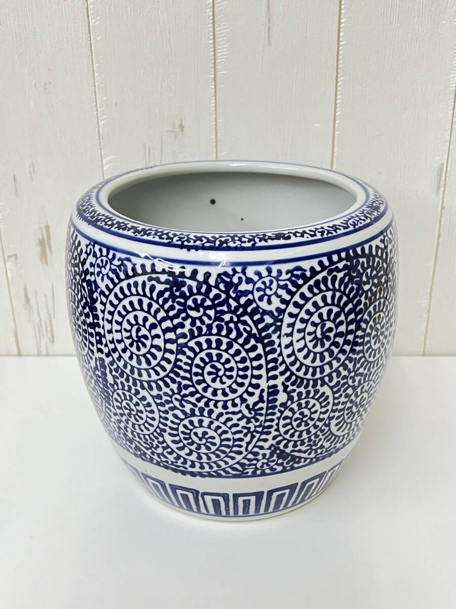 - 深火鉢 【水槽 金魚鉢 蛸唐草】メダカ ブーム 観賞用 陶器 植木鉢カバー 水鉢 魚缶 人気 染付 睡蓮鉢 陶磁器