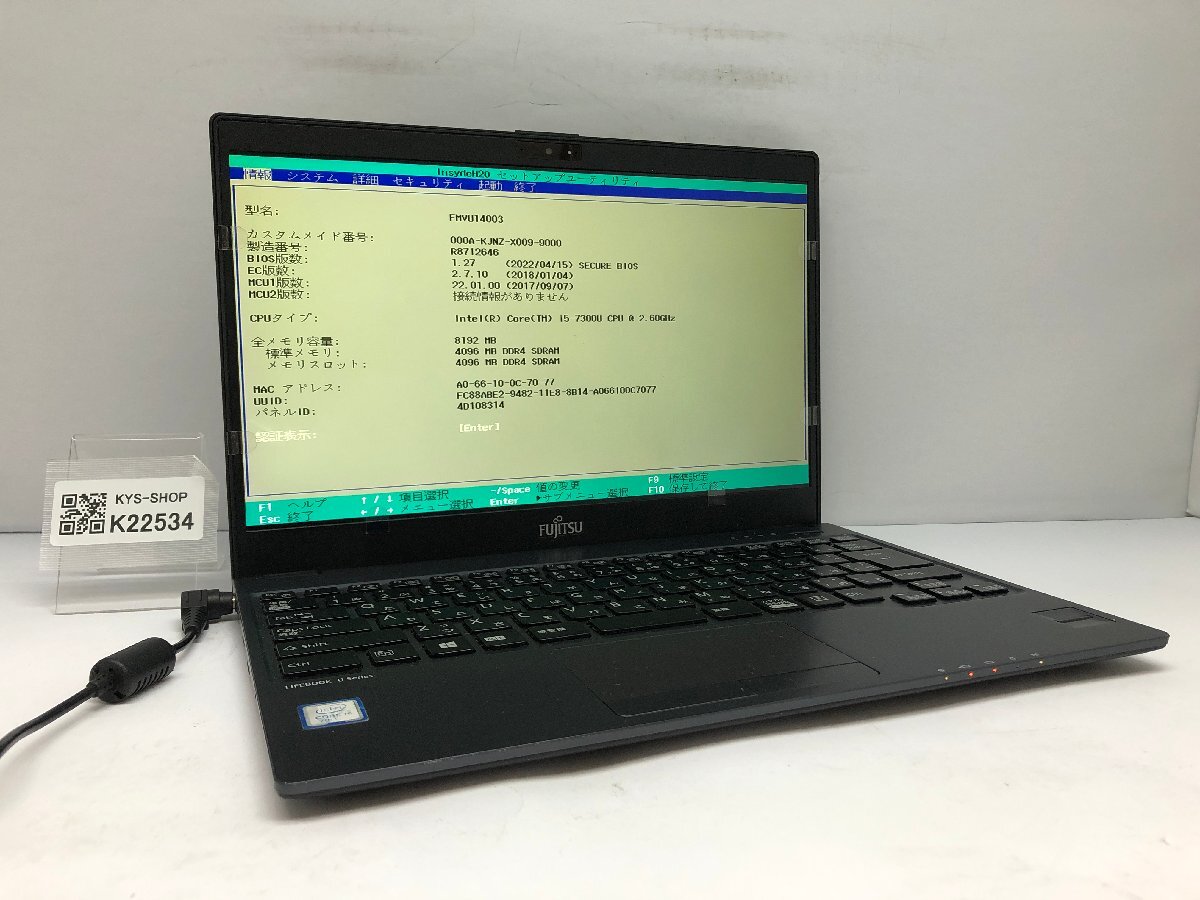 - ジャンク/ FUJITSU FMVU14003 LIFEBOOK U938/S Intel Core i5-7300U メモリ8.19GB ストレージ無し 【K22534】