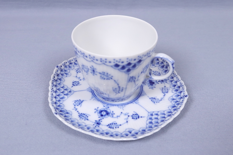 > 11089■ 新品未使用 ロイヤルコペンハーゲン 「ブルーフルーテッド・フルレース」 カップ&ソーサー デンマーク製 洋食器