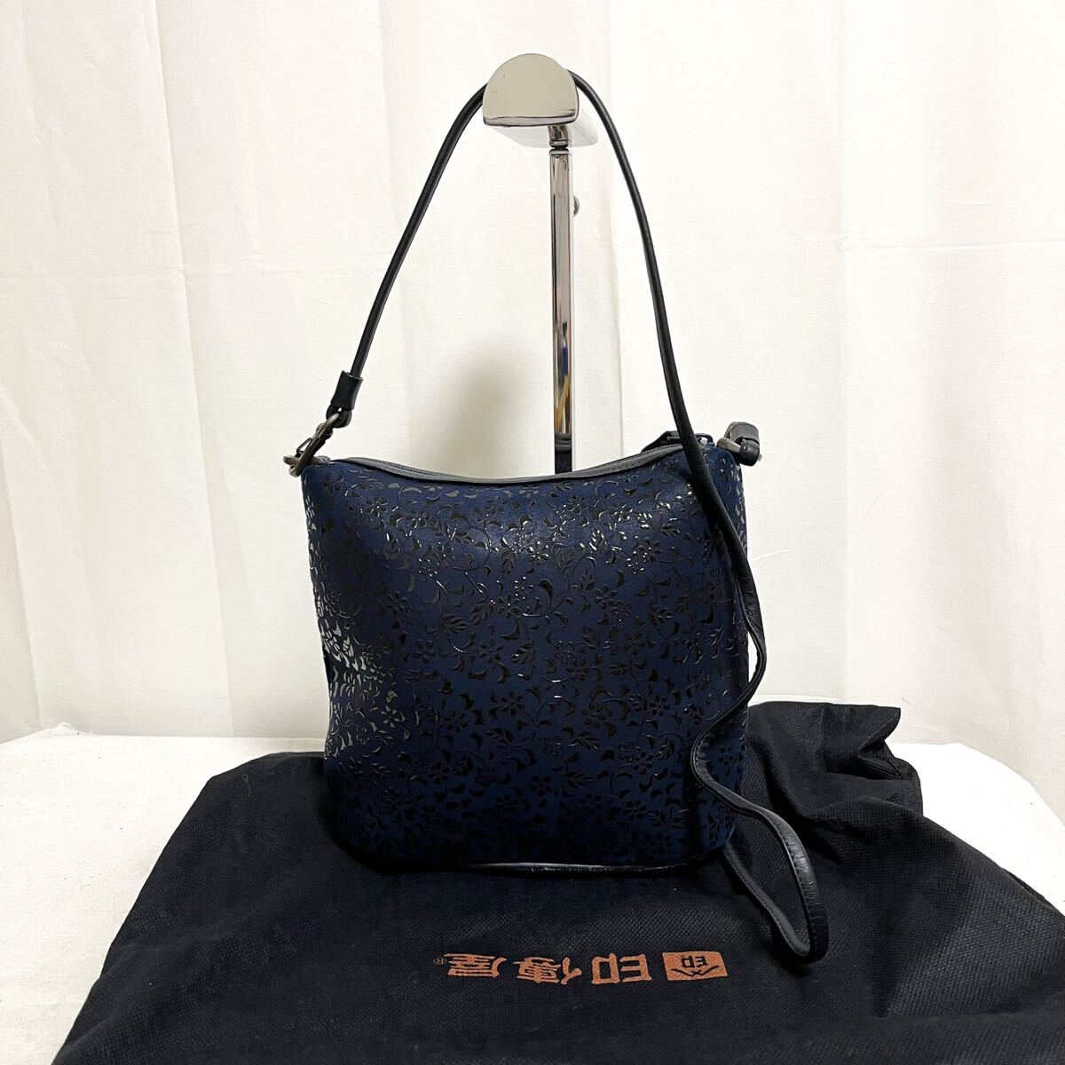 - 和858★ 印傳屋 inden-ya レザーバッグ ショルダーバッグ 和柄 ネイビー ブラック レディース