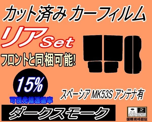 - カーフィルム ダークスモーク カット済み リアセット スペーシア MK53S アンテナ有 (b) スモーク ギア ハイブリッド カスタム リヤセット