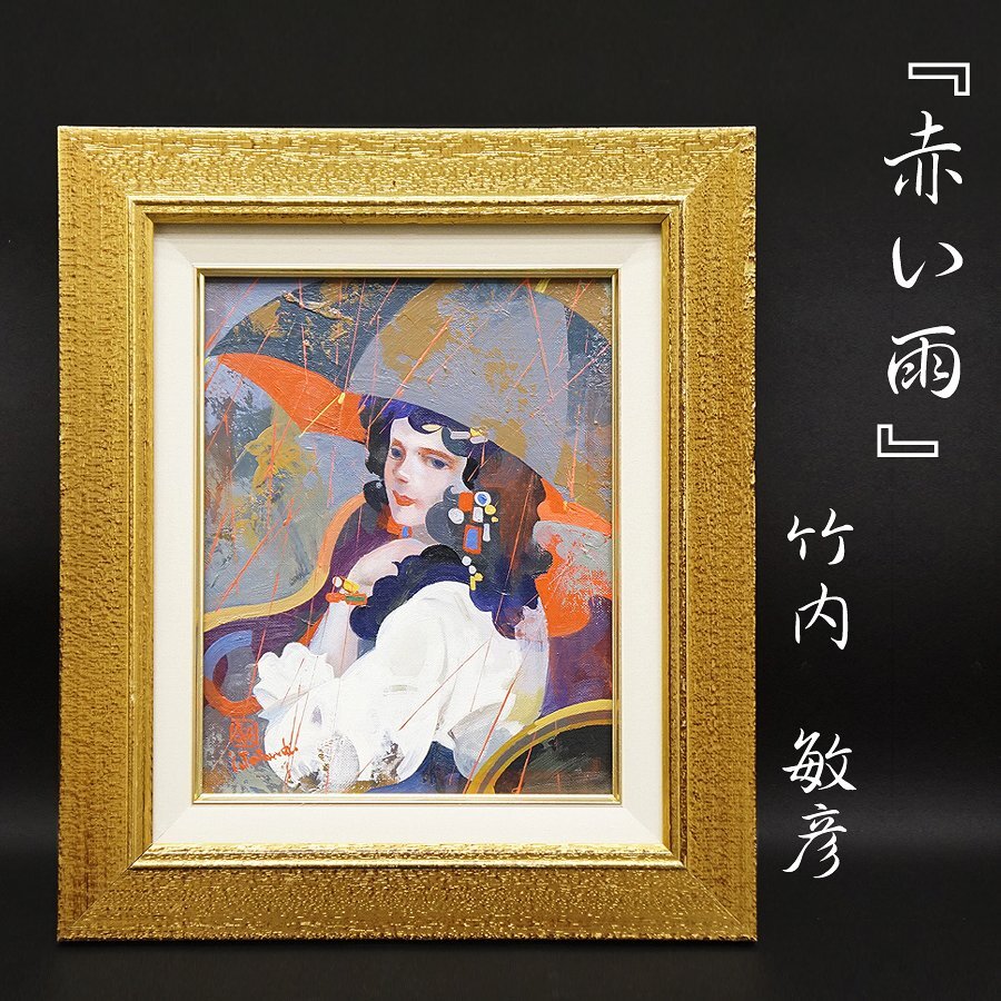 > 竹内敏彦『赤い雨』3号 油彩 油絵 原画 直筆 人物画 絵画 額装 美術 芸術 アート 裏書サイン有 古美術品 元一創会会員 真作保証品