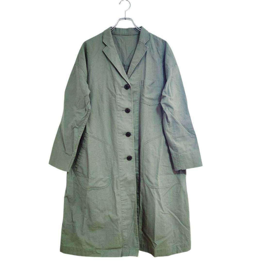 - GLOBAL WORK ロングコート コットンリネン混 カーキ L おしゃれ