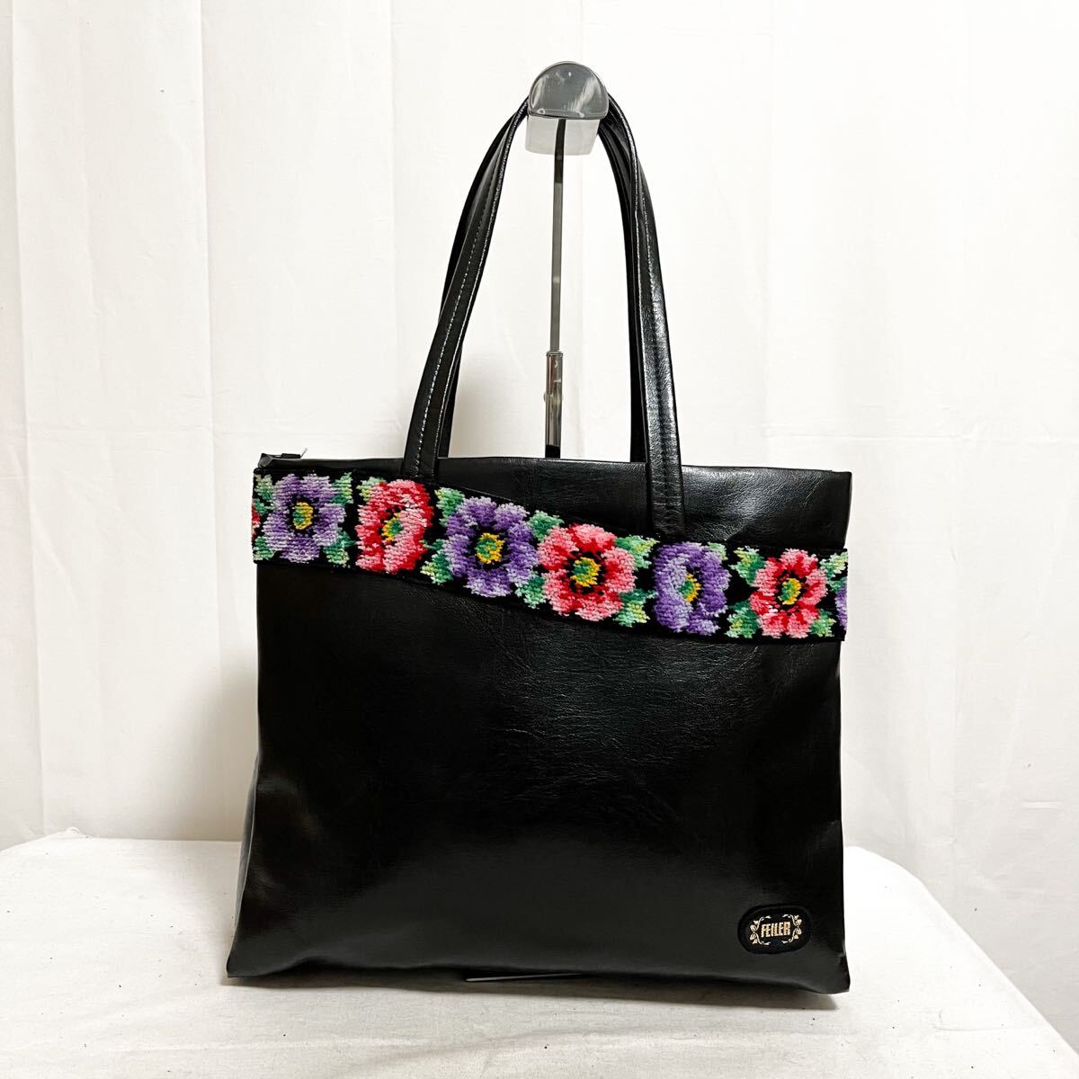 - 和859★ FEILER フェイラー トートバッグ 肩掛けバッグ 花柄 ブラック レディース
