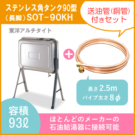 > オイルタンク 灯油タンク SOT-90KH+送油用銅管付き 石油給湯器用 ステンレス製 角型 90型 長脚 東洋アルチタイト