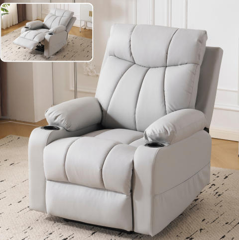- 電動リクライニングソファー マッサージソファ 防水性よい カップホルダー付き ボタン操作 ソファー 1人掛け USBポート付き 耐荷重130KG