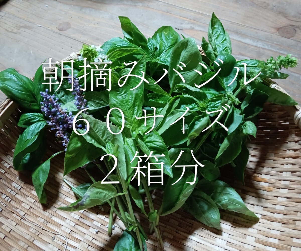 - 朝摘みバジル、60サイズ2箱分+マリーゴールド花種+選べる粗品+匿名送料無料です\(^o^)/