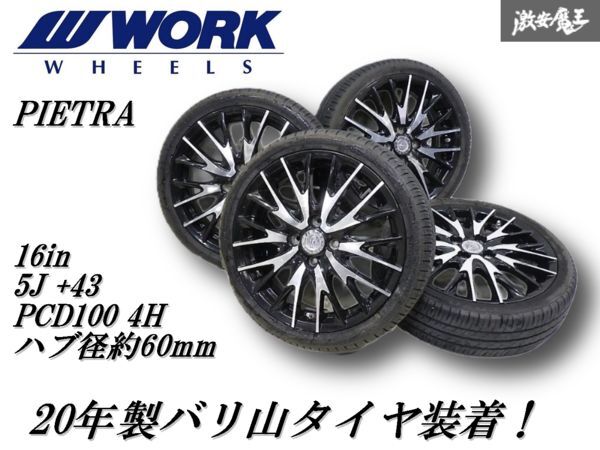 - バリ山!20年製5mm残●WORK ワーク PIETRA ピエトラ 16インチ 5J +43 PCD100 4H4穴 タイヤホイール4本 軽サイズ ムーヴ スペーシア タント