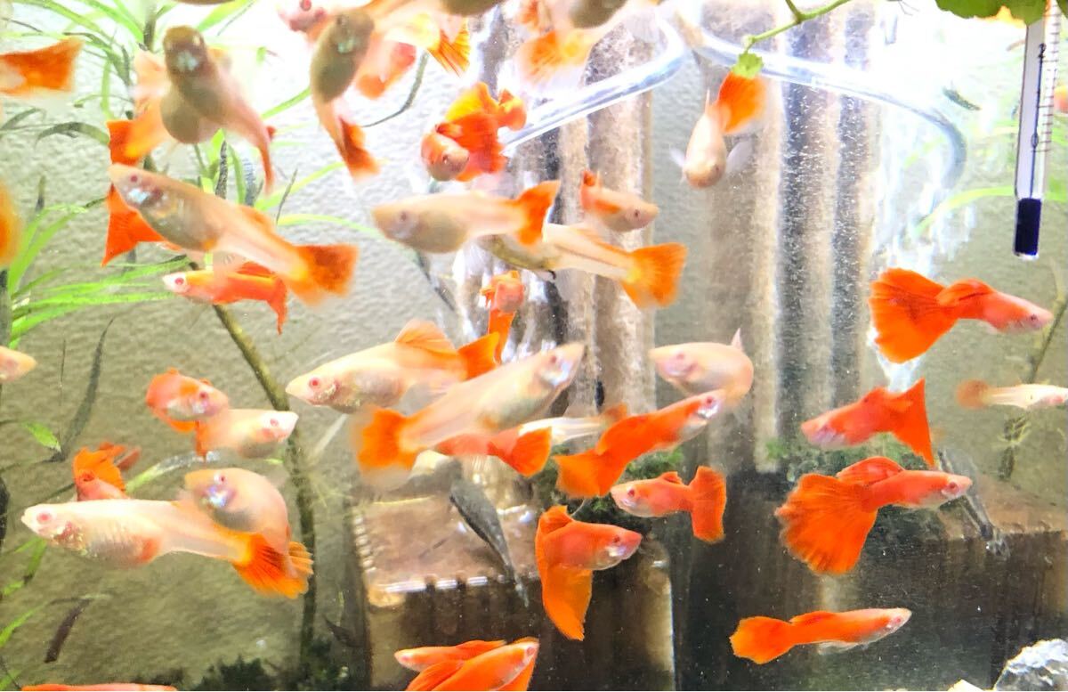 - 【アクアリウムのある暮らし】(熱帯魚) 国産グッピー RREAフルレッド 1ペア サンプル画像 小型魚 水草 淡水魚