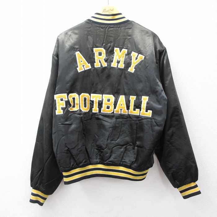 - XL/古着 スイングスター 長袖 ナイロン ジャケット メンズ 90s ミリタリー アーミー ARMY フットボール 刺繍 黒 ブラック 内側キルティング