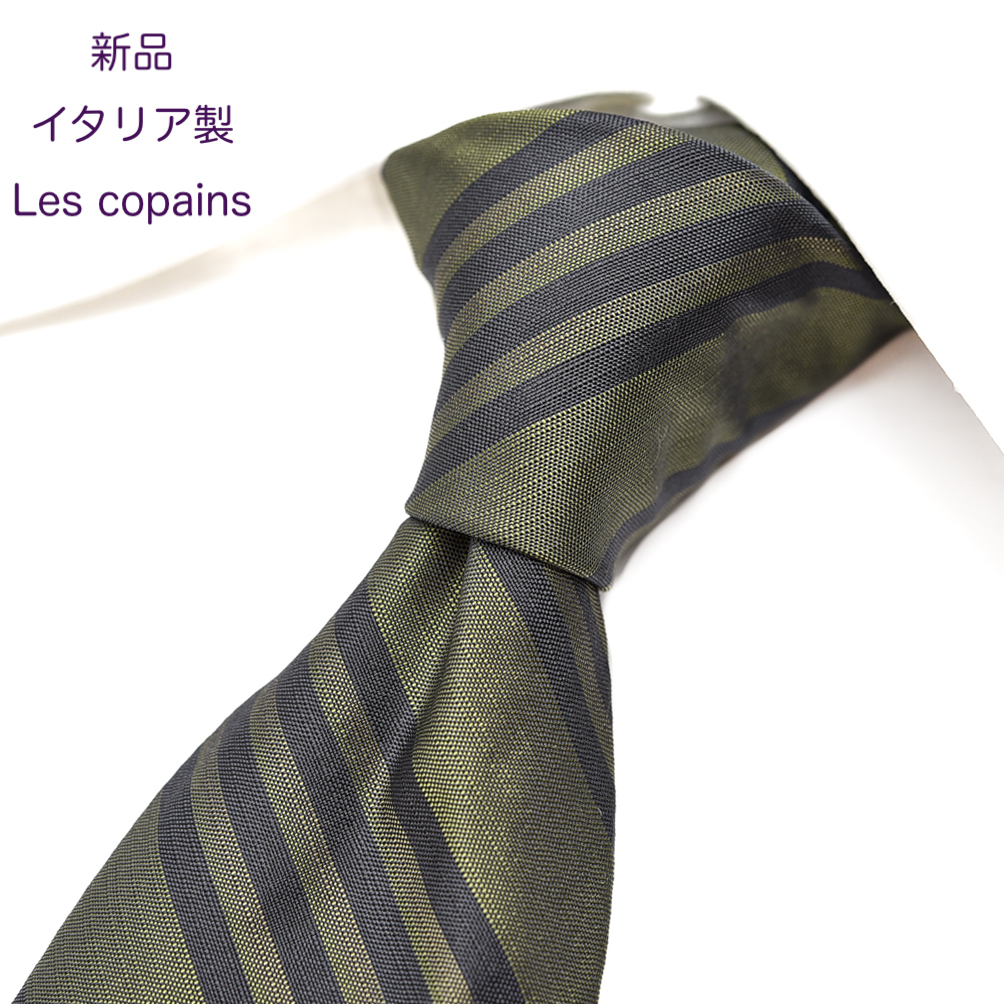 - 【新品・イタリア製】レコパン ・シルク 100%カーキ系レジメンタル柄ネクタイ