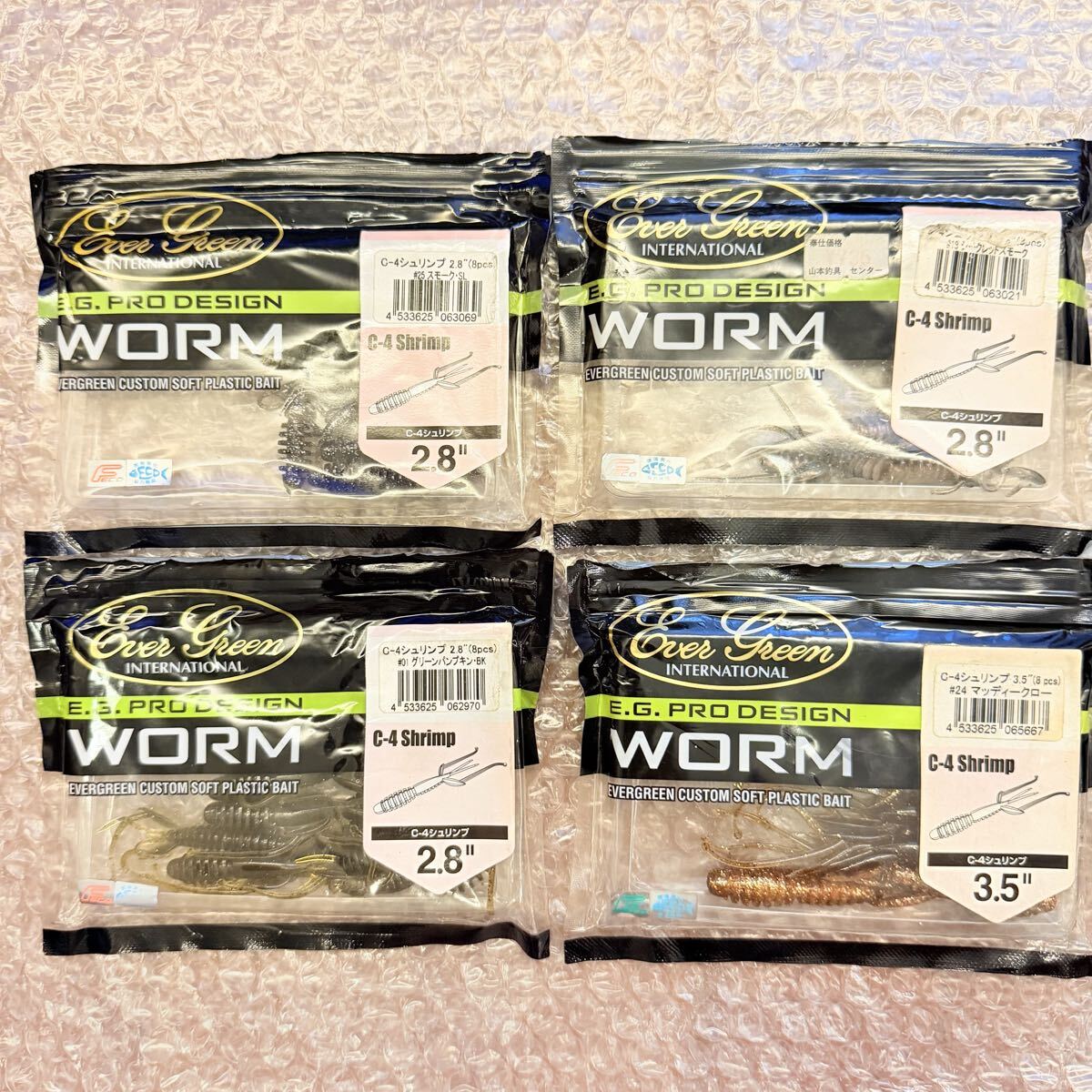 > 送料無料『エバーグリーン C-4シュリンプ 2.8インチ 3.5インチ 22本 ワームセット』EVER GREEN C4 Shrimp 開封済み 未使用 ⑩263