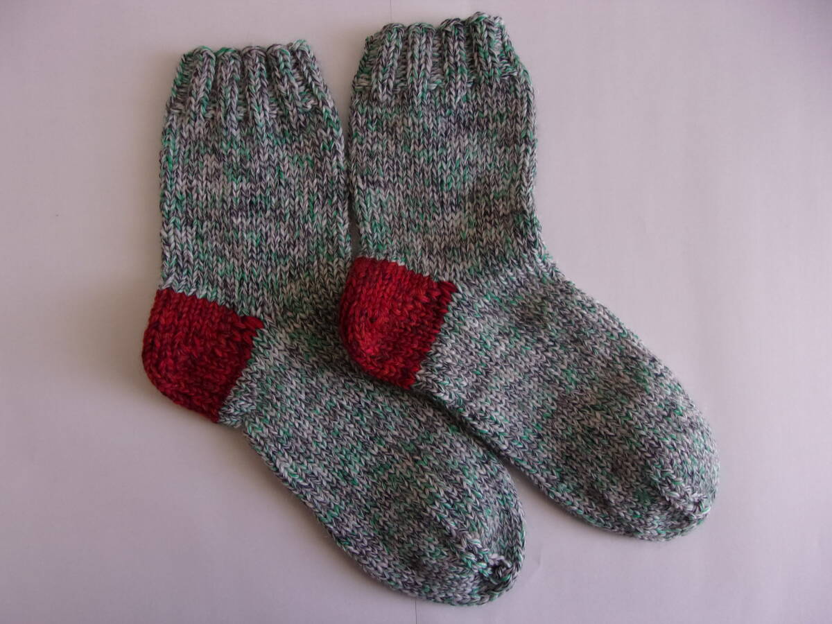 - ミックス2 毛糸の手編みソックス くつ下 23~24㎝ ハンドメイド