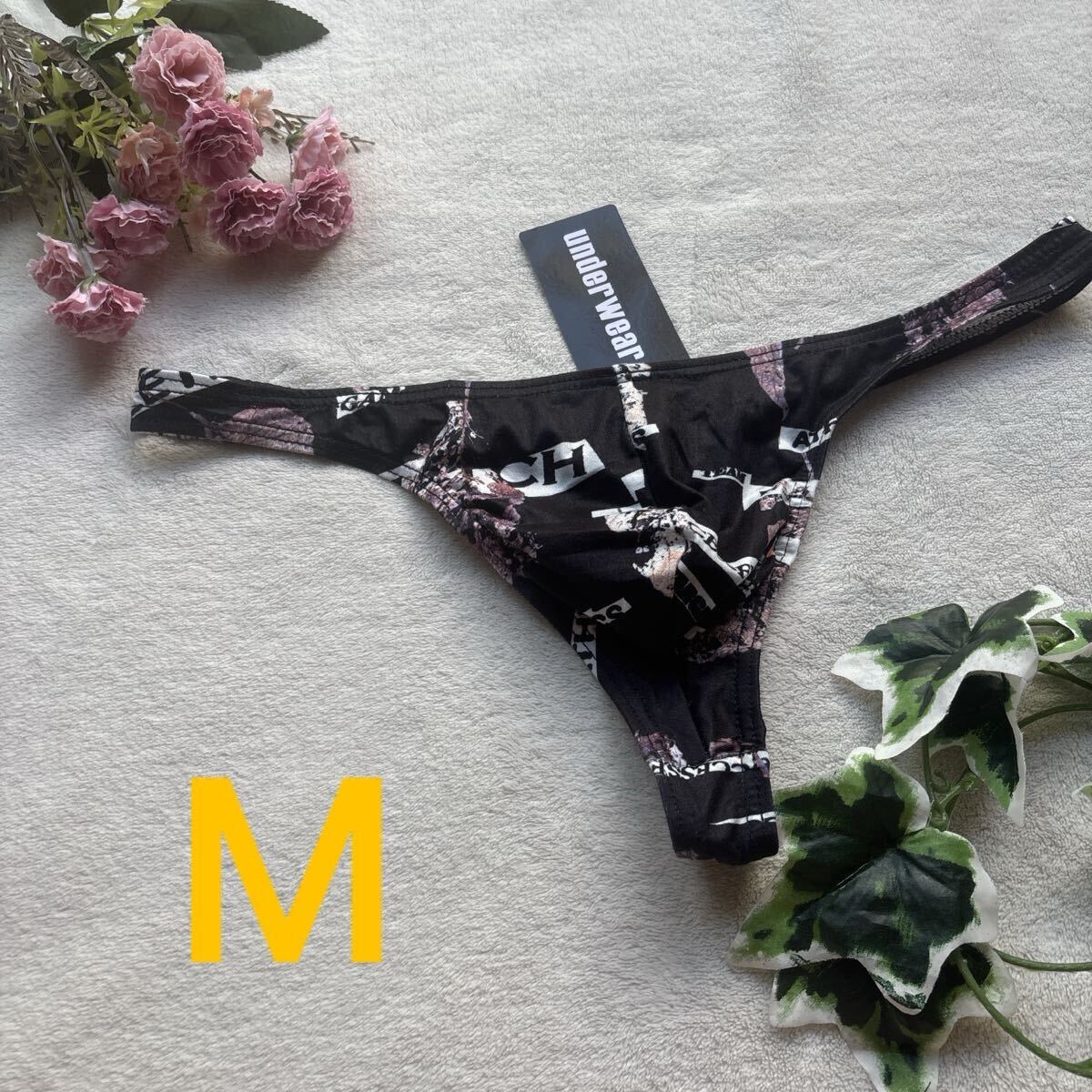 - 新品 メンズ Mサイズ エロカッコいい ブラック リーフ ぴったり もっこり Tバック ビキニ ブリーフ パンツ ショーツ