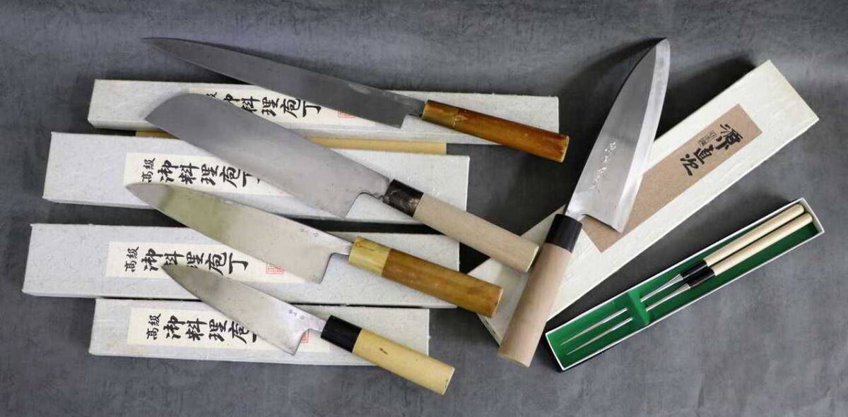 - 1円~ 【包丁】 和包丁 源直次 正鋼特製 など 5本 セット 出刃 刺身 その他