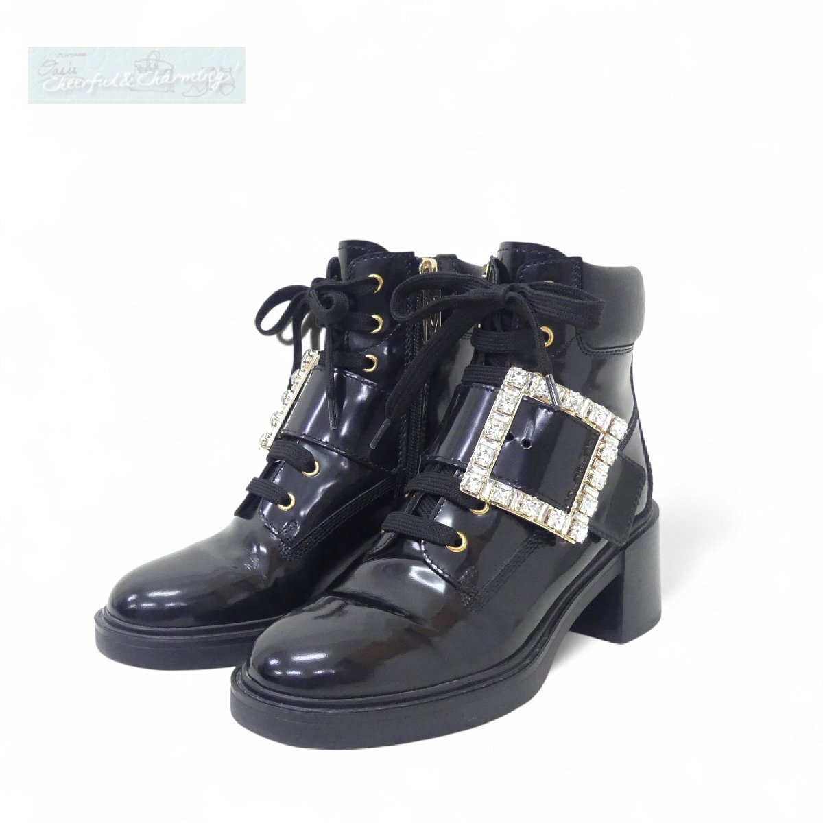 - Roger Vivier VIVレンジャーストラスバックルレザーブーティ 35 1/2 ブラックレザー ビジューバックル RVW59829750OWQB999