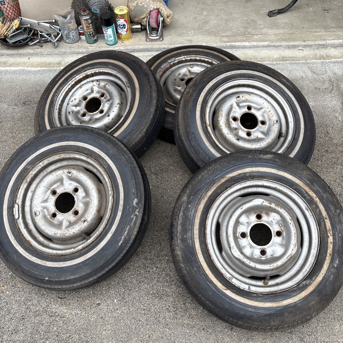 > ブルーバード フェアレディ ホワイトリボン 13インチ 当時物 旧車 スチールホイール バイアスタイヤ