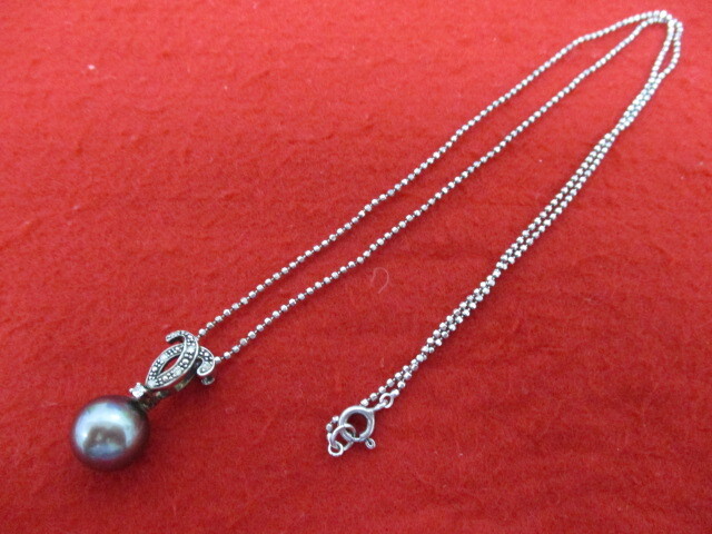 > 【11023】★シルバー925 SV ネックレス★真珠 パール 約10mm玉・ダイヤモンド付き / 全長約45cm