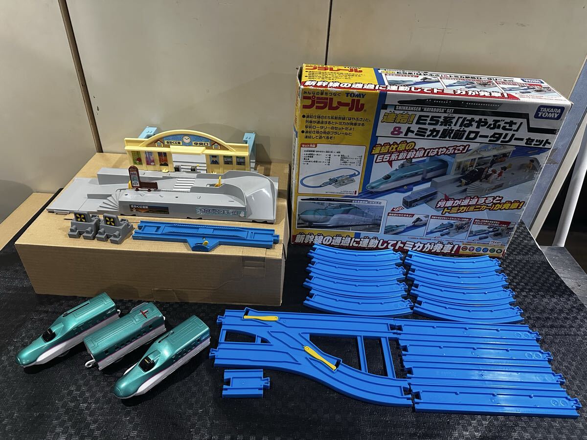 - 希少 レア プラレール 連結!E5系「はやぶさ」&トミカ駅前ロータリーセット 車両 E5系 新幹線 はやぶさ 動作品 情景パーツ レール 100size