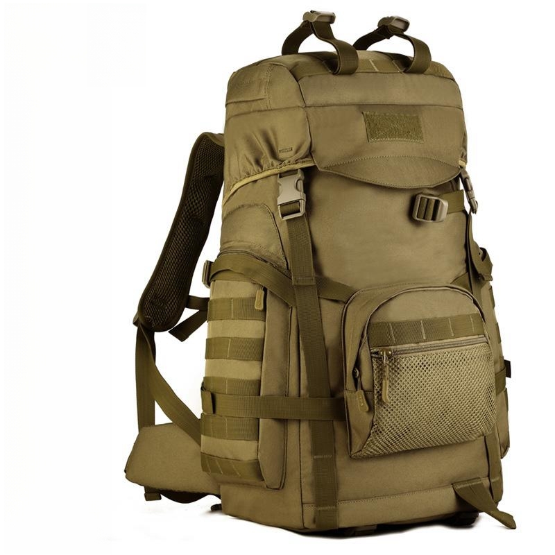 - アウトドア リュックサック 戦術 アルパインパック 軍事ファン バックパック 男女兼用 防撥水 多ポケット大容量 60Lブラウン