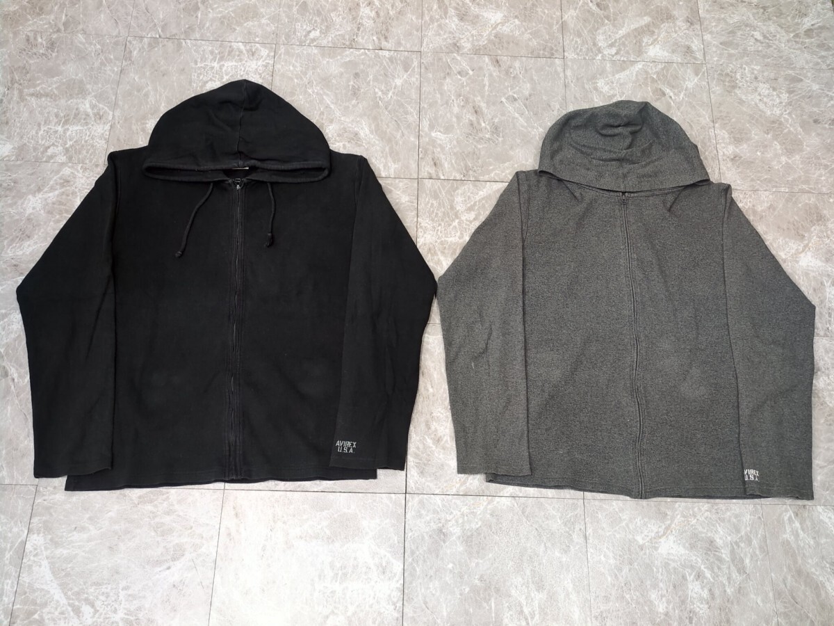- 11.AVIREX 2点 2枚 まとめ コットンニット フルジップ パーカー ブルゾン ジャケット メンズXL グレー黒 y401