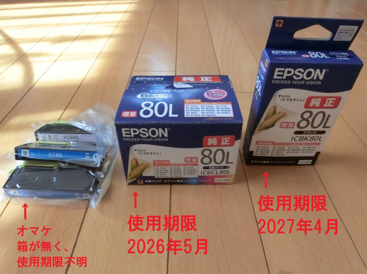 - 期限長 新品 EPSON 純正 インクカートリッジ とうもろこし IC6CL80L ICBK80L 6色 9本 増量 ブラック シアン ライトマゼンダ ICC80L ICLM80L